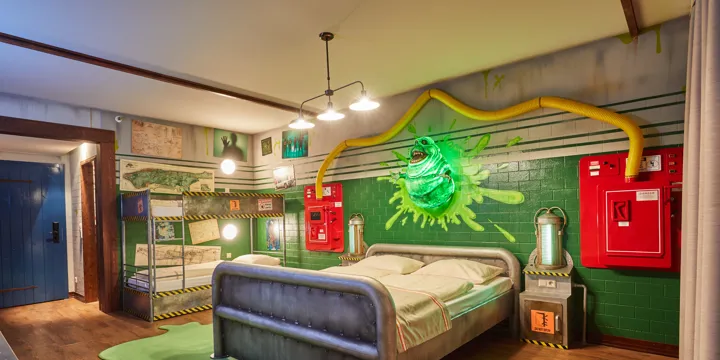 Stay overnight with Peppa Pig, hunt ghosts in our Ghostbusters-themed rooms, or become a Viking in our How to Train Your Dragon rooms.