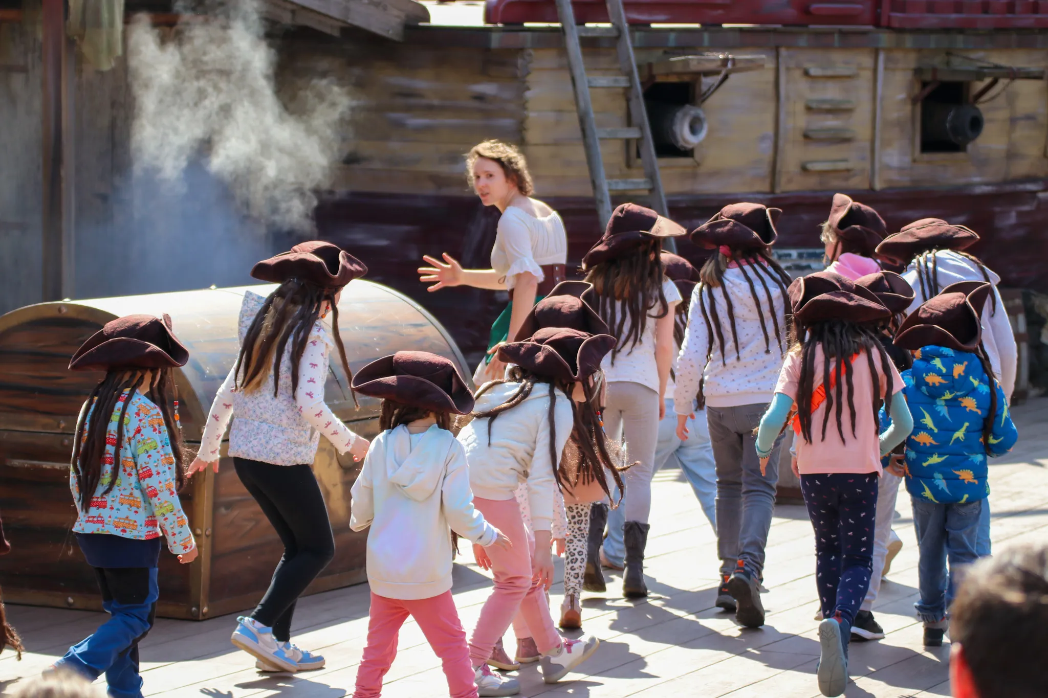 Ahoy! Would you like to become a crew member of Captain Sabertooth's fearless crew and receive a real pirate diploma after successfully passing the test? Then our children's interactive animation for aspiring young pirates on the big pirate stage is just right for you!