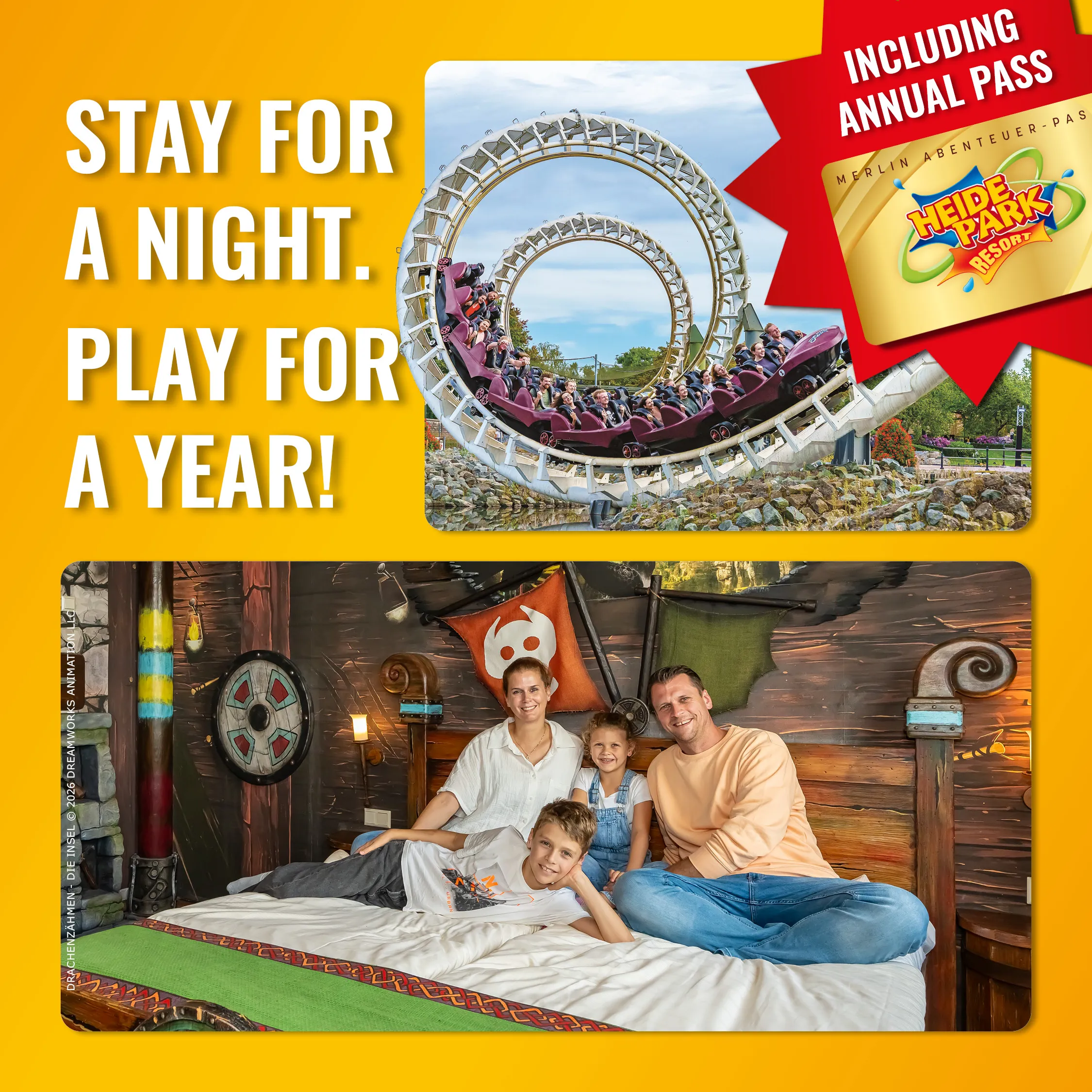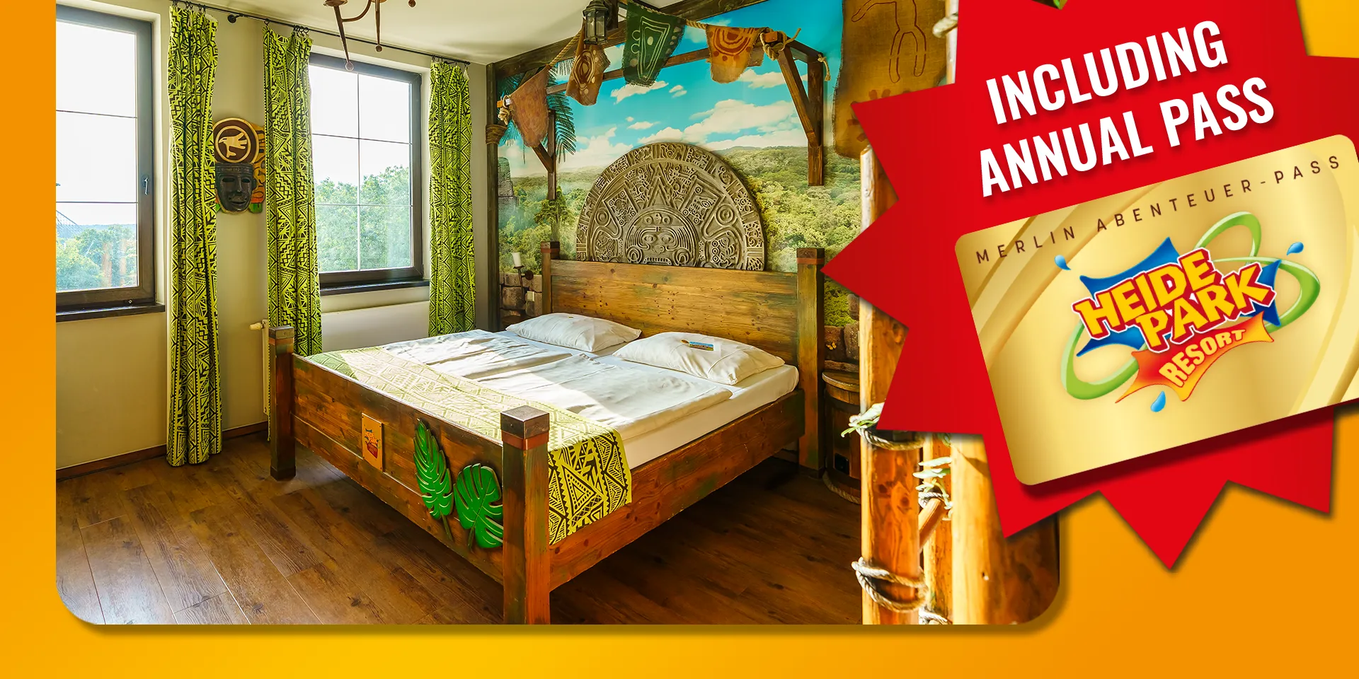 This offer is an exclusive, limited-time promotion for accommodation packages at Heide Park Adventure Hotel. The 2-day ticket is still included in the accommodation packages at the Holiday Camp.
