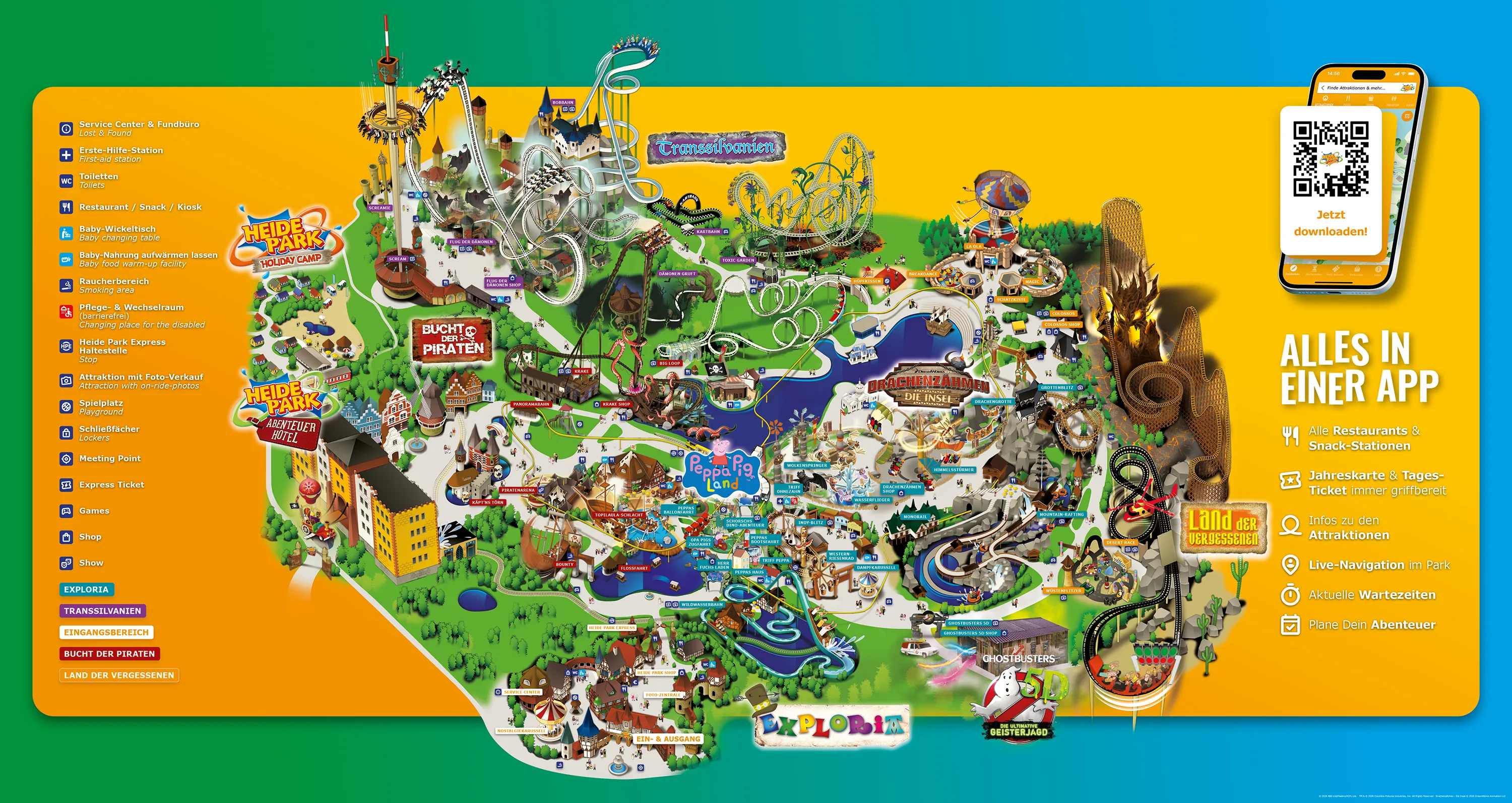 Unseren Parkplan findest Du in unserer kostenlosen Heide Park App! So hast Du alle Attraktionen und Restaurants auf einen Blick und kannst nachschauen, wo es als nächstes hingehen soll.