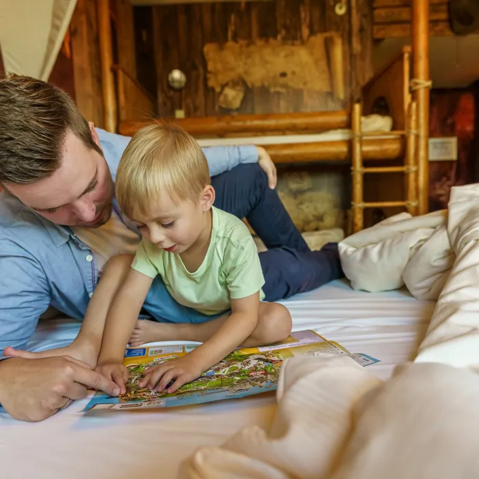 - Wähle zwischen Abenteuerhotel und Holiday Camp